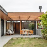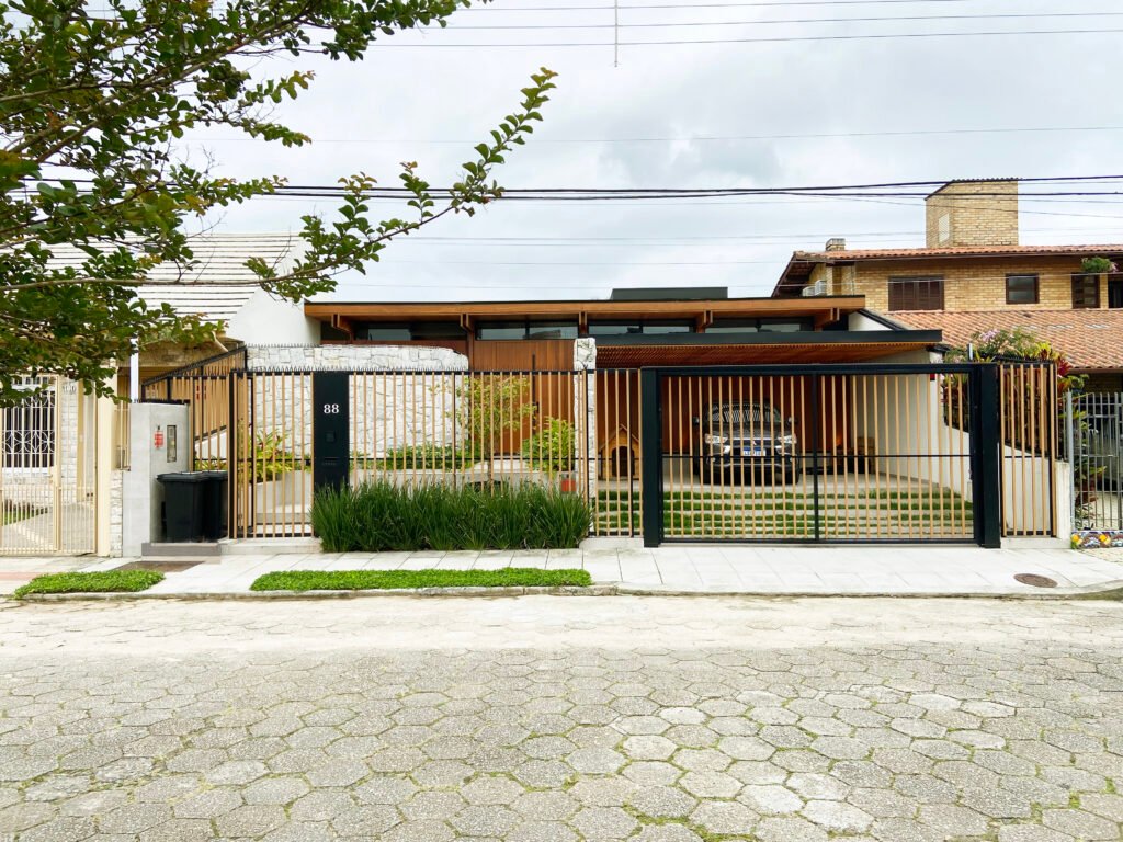A Casa 88 é um projeto de retrofit assinado pela VK Arquitetos, que transforma uma residência térrea original dos anos 80 em uma casa contemporânea, acolhedora e cheia de identidade. Localizada em Florianópolis, a casa preserva o traço da arquitetura original com telhado aparente e estrutura em madeira, reinterpretando esses elementos com linguagem atual.
