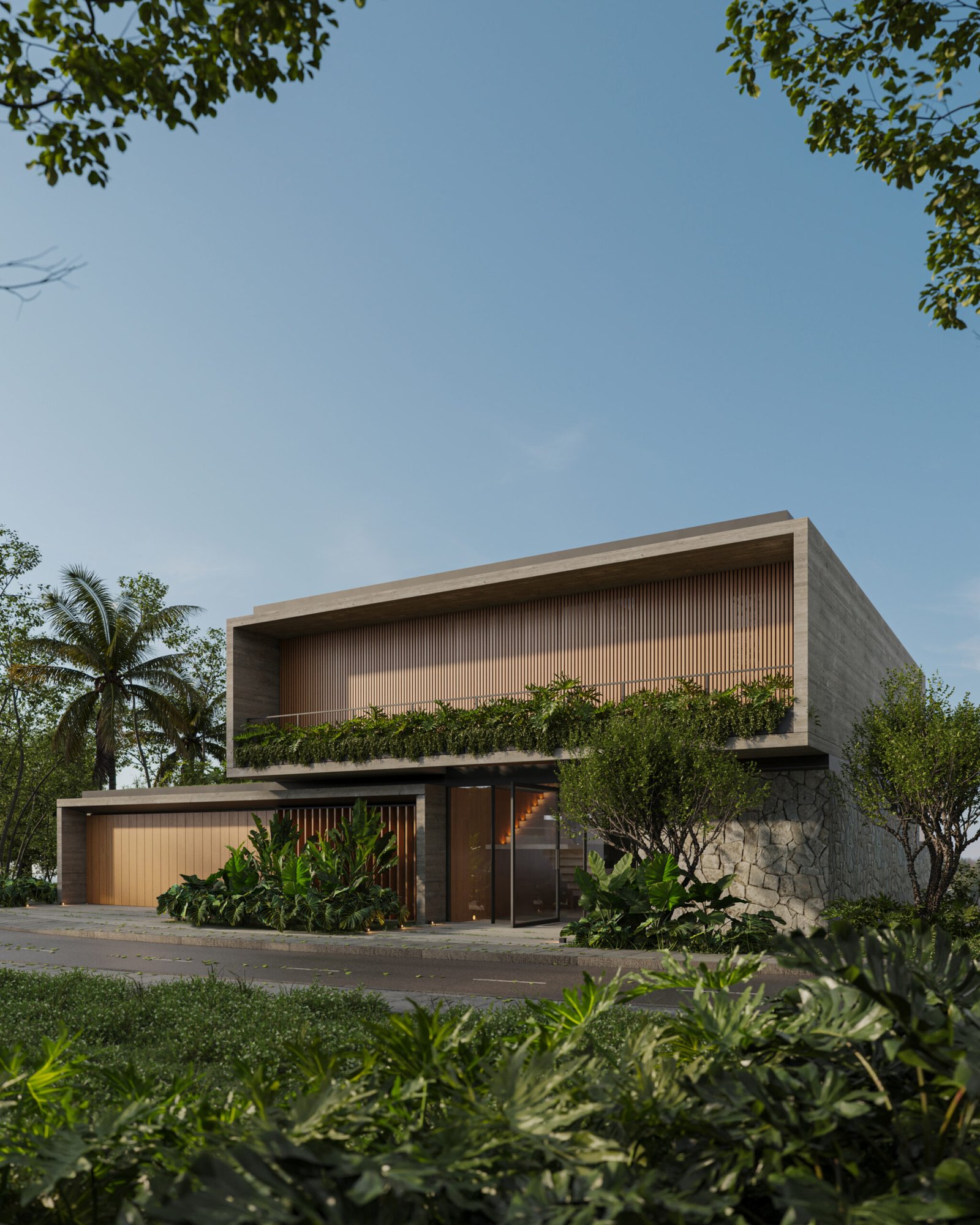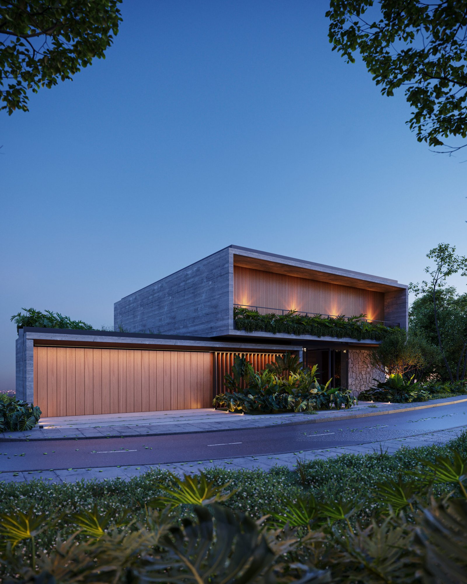 Paisagismo exuberante, iluminação cênica e materialidade sincera fazem da Casa VC um exemplo de arquitetura contemporânea que valoriza o bioclima e o entorno.